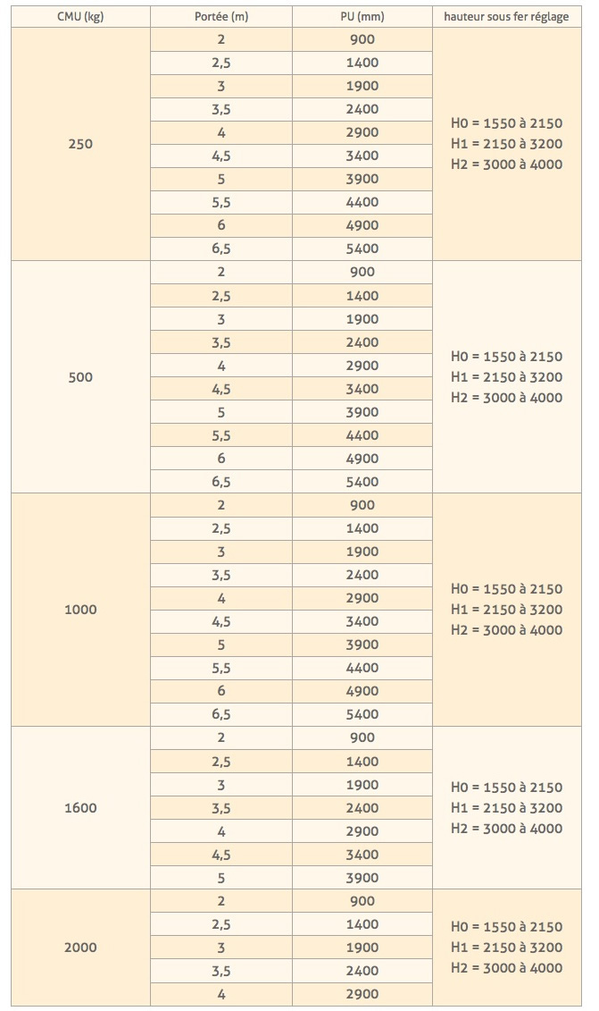 - Vitesse de levage maximum = 8m/mn